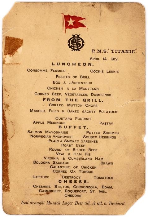 - Scoop! Sul Titanic in prima classe si mangiava il Gorgonzola!!! Ebbene si unico formaggio italiano servito nel carrello dei formaggi era lui. Pubblico la carta del menù della prima classe e vi dico di più questo menù è stato battuto nel 2014, dalla casa d’aste americana Guernsey’s, per una cifra attorno ai 120mila dollari. Siete curiosi dei diversi Menù del Titanic diviso per classe? Ecco il link.